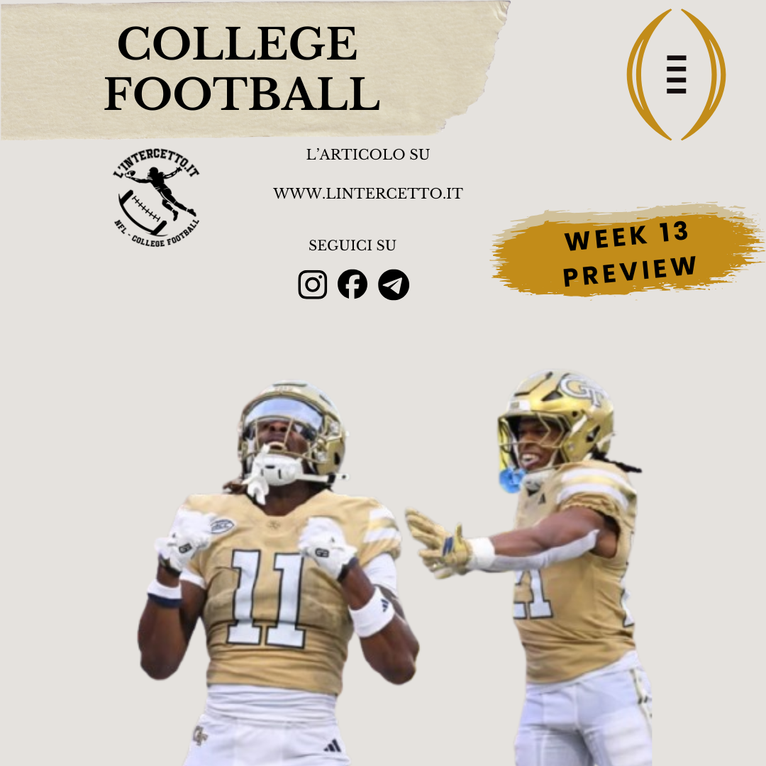 Questa settimana servirà soprattutto a consolidare le posizioni di testa della classifica prima dell’arrivo della rivalry week che potrebbe portare molto scompiglio nelle posizioni centrali della classifica. Le sfide da seguire con attenzione saranno sicuramente Ohio State - Michigan, Alabama – Auburn, Miami – Pittsburgh, UCLA – USC, Virginia Tech - Virginia e Texas A&M – Texas, tutte partite con forti implicazioni per la lotta playoff.