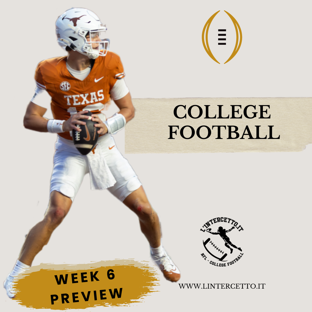 Da valutare sarà anche il comportamento della difesa perché, dopo la sconfitta incassata in Week 1 contro Ohio State (14-7), le avversarie dei Longhorns non hanno mai rappresentato una vera minaccia. La partita di questa settimana servirà anche da importante test perché in Week 7 per Texas arriverà il momento della “Red River Rivalry”, con la sfida al Cotton Bowl contro Oklahoma che rappresenterà un importante punto di svolta.