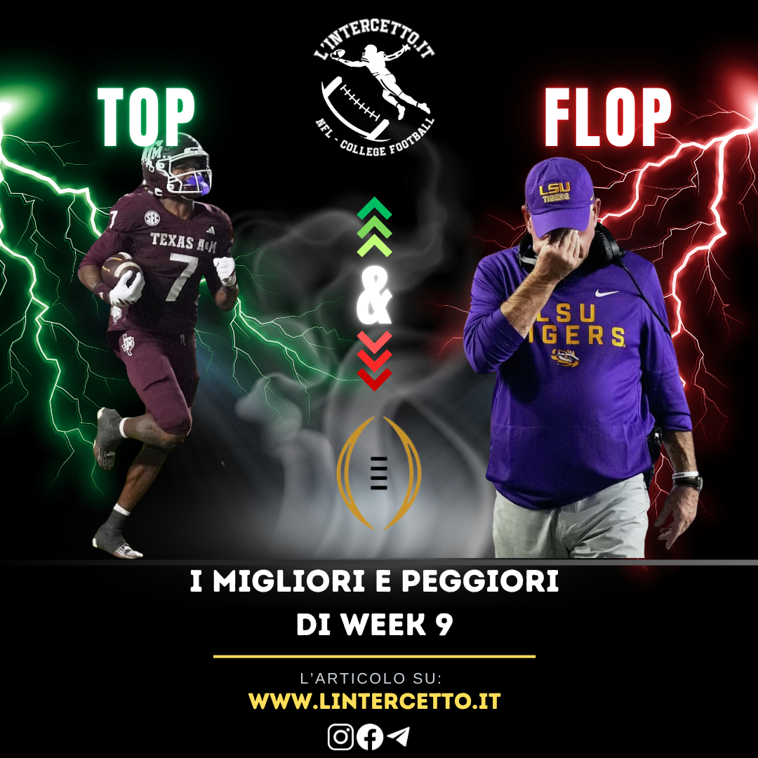 Taquan Robertson e i Buffalo Bulls: Tornano tra i flop i Buffalo Bulls, sconfitti in casa dai modesti Akron Zips al termine di una prestazione orribile del reparto offensivo. Cinque turnover hanno condizionato la partita dei Bulls che a questo punto hanno rimesso in discussione il primato nella MAC e, forse, le ambizioni Championship. Il peggiore in campo è stato sicuramente il QB Robertson colpevole di ben quattro intercetti negli ultimi 16 minuti di gara che hanno vanificato il tentativo di rimonta dei Bulls, giunti a -8 con ancora oltre sei minuti da giocare. Peccato perché per l’ennesima volta i Bulls hanno sprecato un’ottima prestazione del reparto difensivo, assolutamente incolpevole della sconfitta.