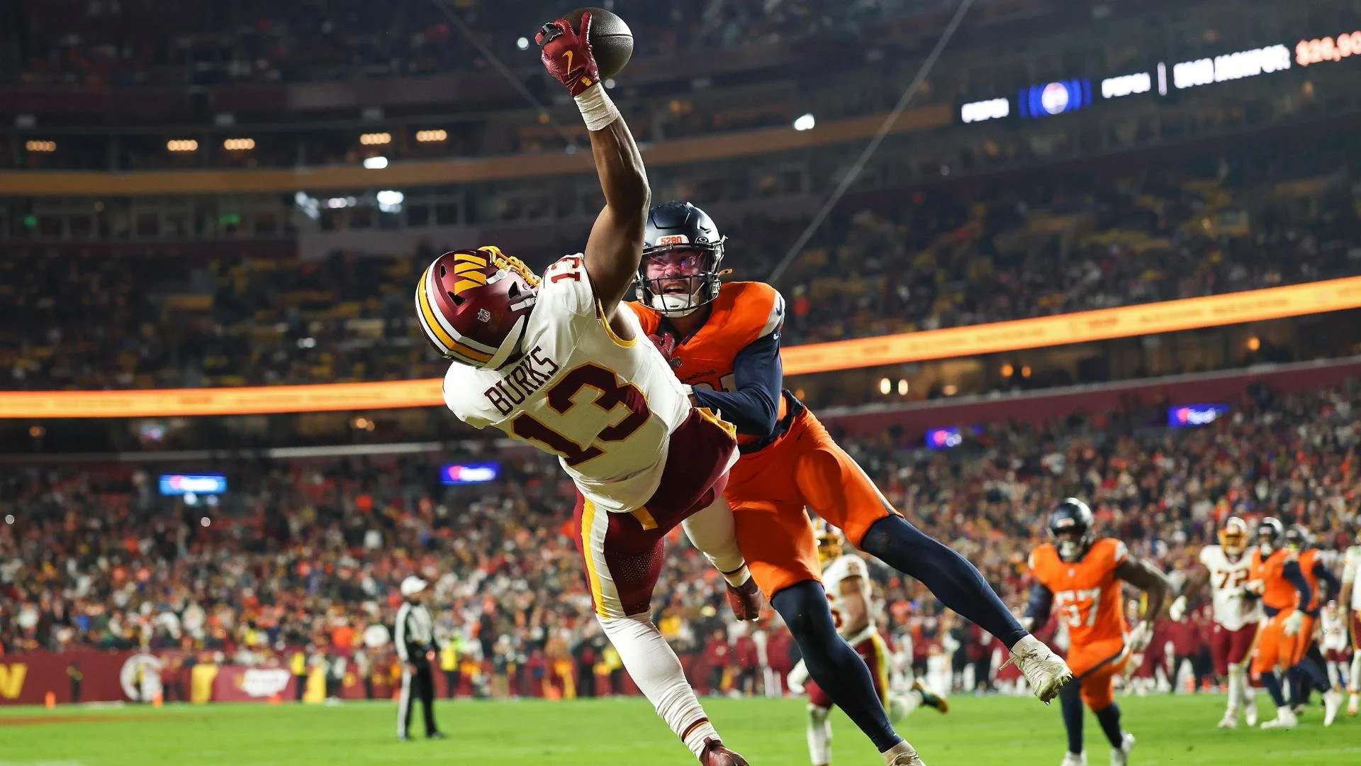 E’ servito l’overtime ai Broncos per avere la meglio dei Commanders al termine di una partita difficile in cui l’attacco dei Broncos ha dimostrato ancora una volta tutti i suoi limiti, incapace di chiudere la partita ed esponendosi alla rimonta dei Commanders nei secondi finali. Commanders bravi a controllare il gioco togliendo il running game ai Broncos e gestendo i possessi con grande equilibrio, guidati da un ottimo Marcus Mariota (294 yard, 2 TD e 1 INT). Broncos trascinati dalla difesa (2 sack, 8 tackle for loss e 9 QB Hit) e da un Bo Nix (321 yard, 1 TD e 1 INT) che nei momenti decisivi riesce sempre ad elevare il suo gioco. Nell’overtime i Broncos hanno trovato il vantaggio con Harvey, ma i Commanders hanno risposto con McLaurin. Tuttavia, coach Quinn ha deciso di giocarsi il tutto per tutto e, invece di accontentarsi dell’extra point del pareggio, ha tentato al conversione da due punti stoppata da un eccezionale Nick Bonitto. Sconfitta (27-26) amara per Washington che saluta definitivamente la corsa ai playoff mentre i Broncos restano al comando della NFC West.